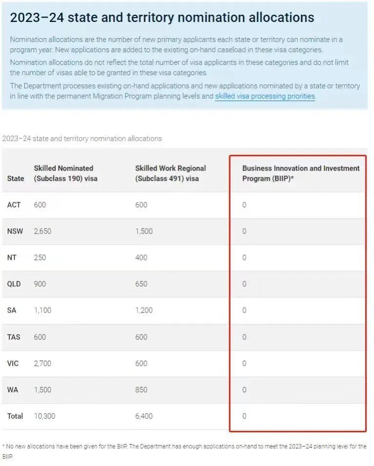 此外,各州投資移民配額全部為零!本財(cái)年澳洲投資移民通道全部關(guān)閉,無任何邀請配額。